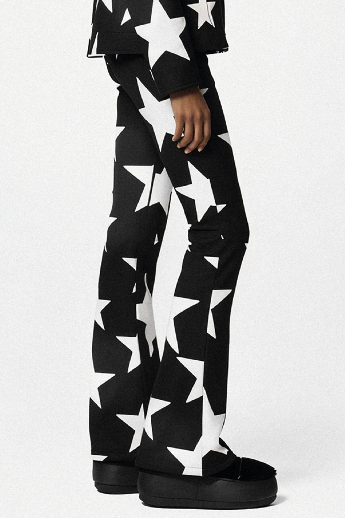 • Bot formuna uygun, yan fermuarlı paça tasarımı