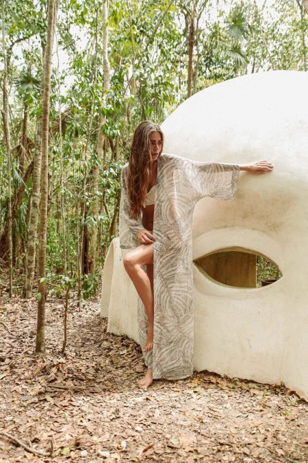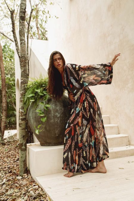 Tüy desenli , uzun şifon kimono
